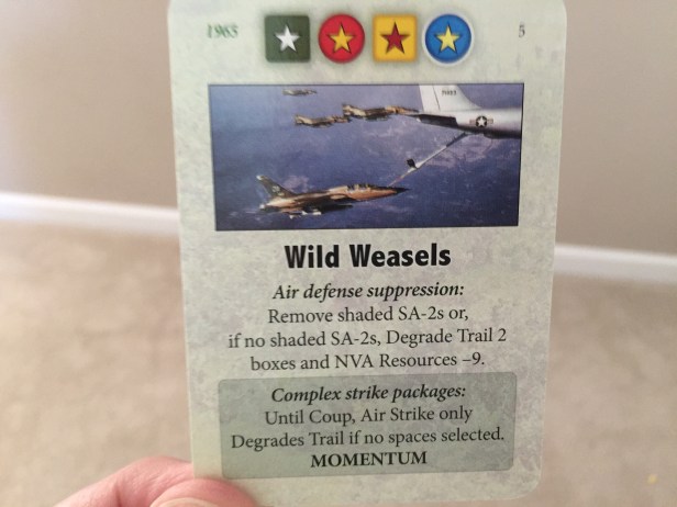 Playing “Wild Weasles” helped me to degrade the Trail to 1 which limits the amount of units the NVA can Rally.