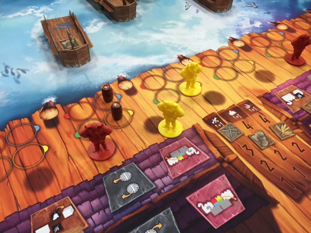Simple yet strategic game play – the game is very simple and is a worker placement game at its core. You place your Viking markers on the actions you wish to take, perform those actions and get the benefit. Simple! But, the game is very strategic and we found ourselves having to think about each action and how to effectively maneuver our shields on the boats to win them. I also liked that you can focus on only 2 different ways to score points. Betting is a very solid strategy and the player that won the 3 player match during the demo won at least 4 of the bets he was involved in. I also scored a lot of points building up the value of my goods.