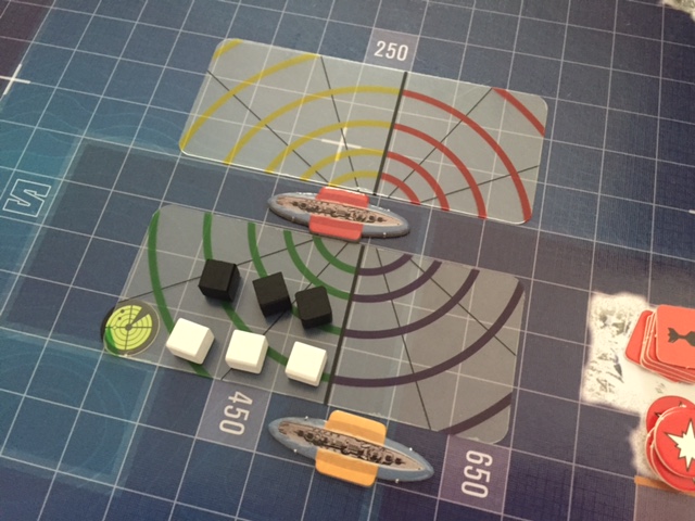 The hunt and the game of hide and seek is really the meat of the game. Sonar searches and the movement of the subs at different depths are the tools that each side has at its disposal to survive and accomplish their mission. I love this part of the game! I always try to judge how good a game is by how it makes me feel as I play. Using that as a yard stick for They Come Unseen, the theme is excellently integrated into the gameplay and is oozing out of every one of its portholes. The hunt is by far the most thematically tense aspect of the game. If you had ever hoped to experience what it must be like to be 600′ below the surface in a steel cylinder with concussive blasts from depth charges missing you by mere inches, look no further. But the game is not just tense for the submarine captain. The Soviet player also frets over whether the submarines have slipped through their net and made their way to freedom.