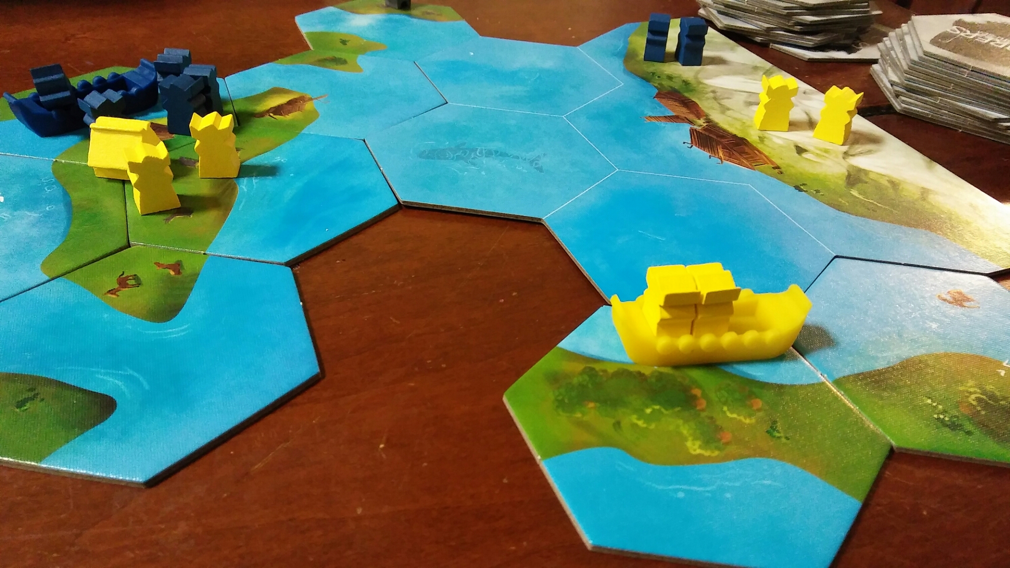 This was a little hard to get because in Explorers of the North Sea by Garphill Games, you start with 7 Vikings. Luckily for me one was killed while raiding a boat and so I was left with 6 Vikings to continue the game. Those Vikings put up a solid Valhallian effort. Explorers is a fantastic tile placement exploration game where you pillage the islands in the area! In this two player game, Jen (my wife) was mowing down settlements like crazy, while I focused on gathering different types of livestock! In the end, she edged me out by 5 points for the win. I really like the mesh of mechanisms in this game. Turns are quick and it looks great on the table when things are all said and done. Garphill Games really excel at making games that are quick but deep with interaction and strategy. I think, Raiders of the North Sea is my favorite of the Trilogy but Explorers is a very close second. If you ever get a chance to play these I strongly recommend it.