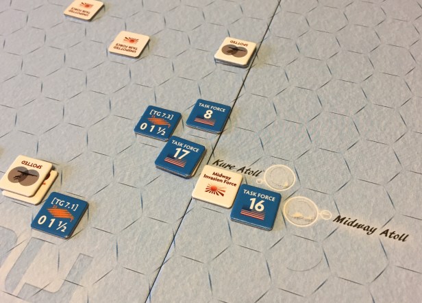 During the first battle, I intentionally held back my aircraft as I didn’t want them damaged/disrupted. So my TF17 launched its 4 aircraft rather than enter the same hex and open my ships to potential damage.