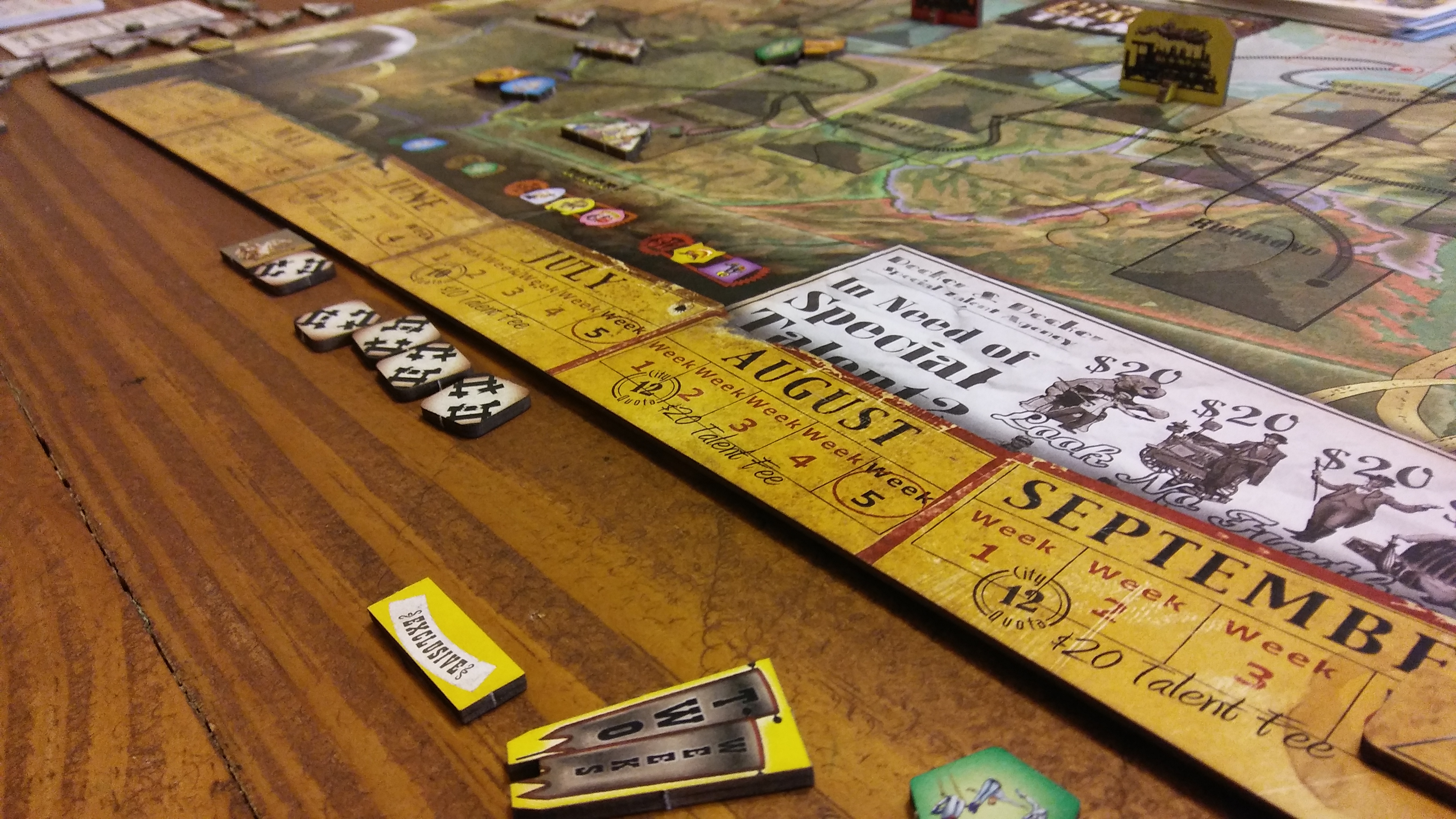 The second phase is the Roustabout Phase, this is your typical Upkeep phase where new tiles are added to the board, advance to the next week and do any events if it is the start of a new month.