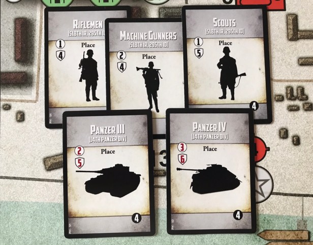 Here the player will draw three Wehrmacht Cards one at a time from the deck revealing each as drawn and carrying out the German actions on one card before proceeding to the next.