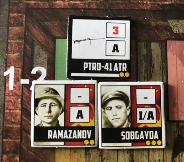 That are three Actions that are associated with Soviet Counters and Weapons Counters. There are some basics to the use of these “teams” that we will cover here. First off, whenever a Soviet Counter moves it can take along a Weapon Counter with the same special action designation as the counter. Also, usually the rules prohibit two counters from occupying the same Combat Position on the board, but in the case of two counters with the same special action designation, they can occupy the same Combat Position as long as a Weapon Counter with their same special action designation is also in that space. If a Weapon Counter is ever left alone in a space it is immediately moved to the Reserves Box.