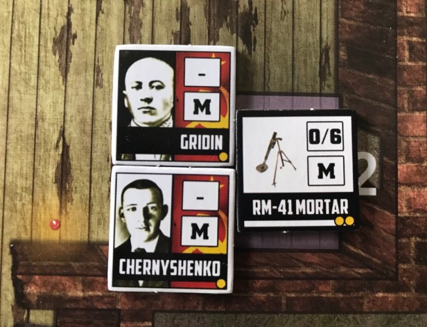 Incoming! The Forward Observer is a great unit that you have to use well to stave off the never ending German hordes. This unit allows the player to call in an artillery strike on two side by side German Wehrmacht counters that the Forward Observer has a line of sight to. You just have to have an artillery token on the 32nd Guards Artillery Regiment location on the Volga River operational-level part of the board.