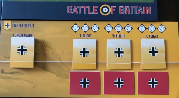 At the start of the game during Turn 1, the Luftwaffe player will draw 10 Mission Cards. After reviewing these cards, one Mission Card will be assigned to each of the 7 Luftwaffe flights. This will leave 3 Mission Cards remaining that the player must hold onto and this will be the start of their pending mission hands.