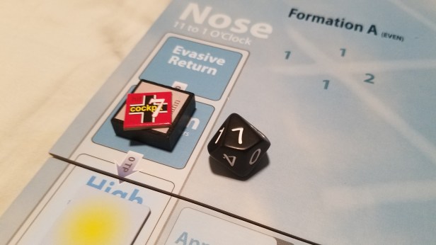 The second mechanism used to represent this spatial relationship ballet between the two enemies is Position. There are three types of Position that players will need to focus on and remember including Unengaged, Engaged (including both Advantaged and Disadvantaged) and Engaged (Tailed). This game is fast paced and plays in about 10-15 minutes. We find ourselves making machine gun sounds and diving whines as we play and it is always a really good time.