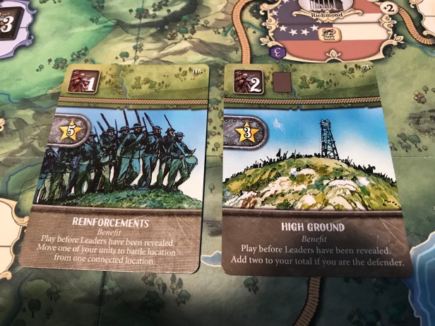 Each time the decks are cycled, the Union player adds some better quality cards, becoming stronger as the game progresses, where as the Confederate player adds lower quality cards, becoming weaker. The underlying game mechanism is one of “deck destruction” rather than the more normal deck-building.