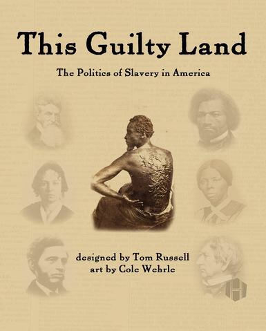 I have been eagerly anticipating this game since I first saw its cover a few months ago and followed a discussion on Twitter between an inquisitive fellow and the designer Tom Russell about the appropriateness of a game on such a sensitive topic. This Guilty Land is about the political struggle over slavery in the decades leading up to the American Civil War. Its central premise is that the war was the only way to achieve abolition: the slave states never would have willingly given up the practice, nor would it have worked itself out at some point down the road. This is a story of how the systems that democracies use to solve problems – debate and legislation – utterly failed in the face of an undeniable moral evil, of how that evil was defended by those systems, and of how calls for compromise only strengthened it and delayed the reckoning that had to come.