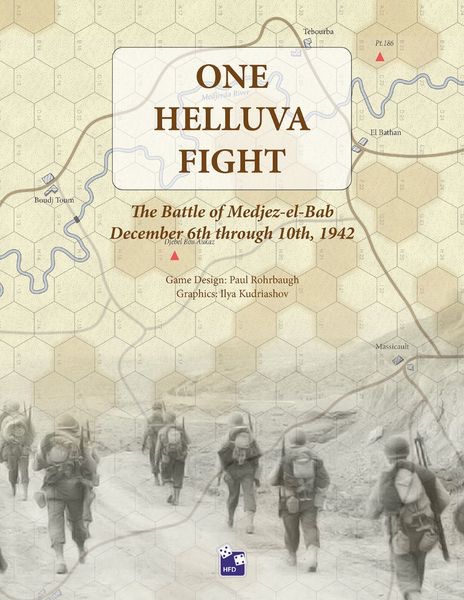 One Helluva Fight is a low to moderate complexity wargame on the Battle of Medjez-el-Bab, fought in northern Tunisia. The Allied landings in Morocco and Algeria ushered in the collapse of the Vichy government in France, and a dramatic strategic shift in the war in North Africa. The first major engagement fought by the Anglo-American forces of the war occurred near the crucial crossroads town of Medjez-el-Bab. A British and American battle group, named Blade Force and composed of units from the US 1st Armored and British 78th Infantry divisions as well as some former Vichy French units, initially took the town and then drove on to Tebourba to come within striking distance of Tunis (forward observers could actually see the minarets of the distant port).