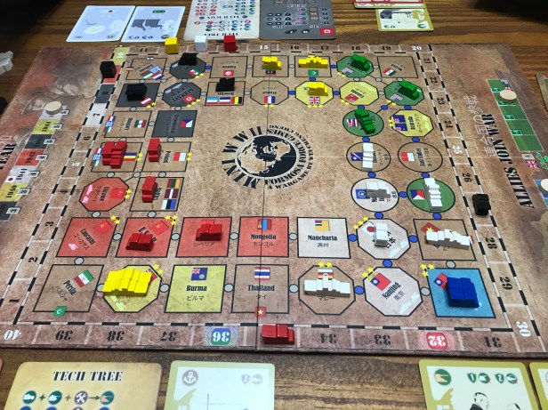 Mini WWII is a strategic wargame for 2-4 players and playable in 90 minutes. Players command the military forces of Germany, United Kingdom, Japan, and Soviet Russia during the Second World War with both the United States and China able to come into the war later in the game as they are drawn in through lend lease actions or in response to aggression from the Axis powers.