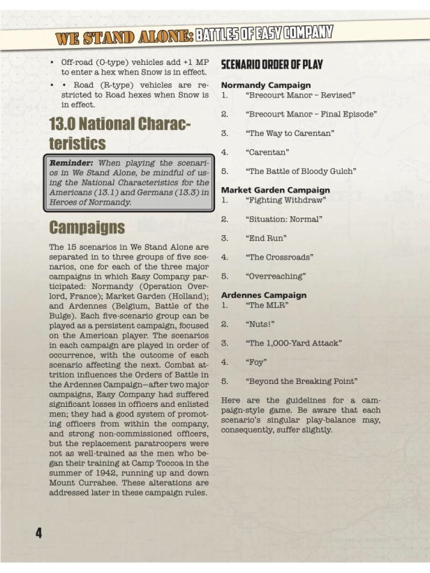 The We Stand Alone expansion module contains 15 scenarios, covering battles from the daring assaults on Brecourt Manor and Carentan, in Normandy, to the desperate defense of Hell’s Highway and The Island, during Operation Market Garden, to the frigid foxholes of Bastogne and Noville, during The Battle of the Bulge. The scenarios can be played individually or in three five-scenario campaigns. Thirteen of the 15 scenarios are new designs, with two revised scenarios, plus a Brecourt Manor variant. Three new Maps, including winterized and revised Maps, bring the dramatic landscape of these battles to life: Entrenched German artillery positions in Normandy, an elevated dike and a watchful windmill in Holland, and chilly cratered forests of the Ardennes provide the setting; it’s up to you to provide the leadership, heroics, and actions needed to win victory for the brave American paras or the obstinate Germans they faced.