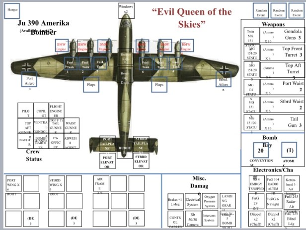 Greg: The two starting bombers are the Fw300 and the Me364. As time goes by, a player can upgrade (if they wish) to the Ju390, the Ta400, and finally the Arado E555.