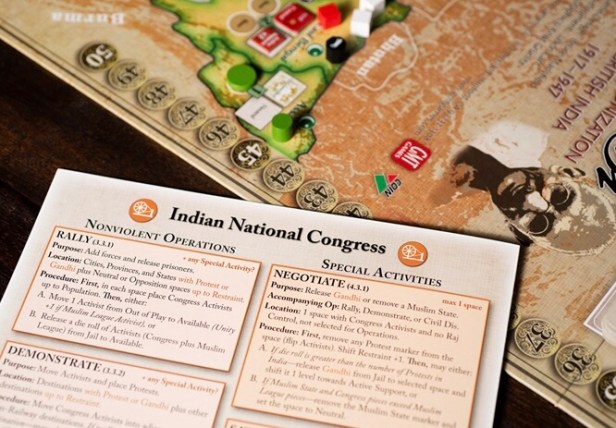 Bruce: See above! There were moments when I knew I had an idea that would make the game better, but didn’t yet have a working model to share with Jason or Scott. Usually, these were ideas that would swing the game in a new direction, or deviated from the COIN model. I remember when I had the idea for the nonviolent factions not using resources. That was a pretty dramatic change from usual COIN. Jason wasn’t sure about the idea at first, but later came up with the idea of linking Muslim League Operations to Unity and Congress Operations to Restraint, a brilliant move.