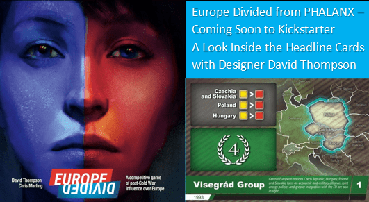 We have agreed to host a series of posts written by David Thompson on the blog about his upcoming design Europe Divided published by PHALANX and coming to Kickstarter on June 10th. As you know, we have hosted a few different series of Event Card spoilers over the past year or so with All Bridges Burning and People Power both from GMT Games as well as a recent CDG focused on the Barbary Coast War in The Shores of Tripoli from Fort Circle Games. I really love the Card Driven Game mechanic and frankly any game that uses cards as a primary engine. So keep an eye out for several of these posts leading up to the Kickstarter campaign start that focus on the history behind the game and how the cards are used.