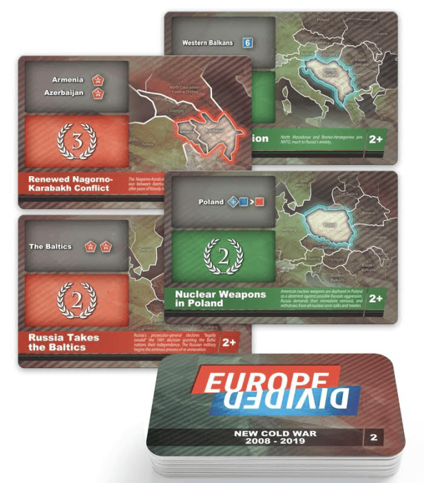 Of all the things we talked about during the development of the game, this addition is the one I am the most excited about. It was relatively late in the design when Jaro — the lead developer — challenged me with an idea: what if we added future events to the game? I loved the concept. I remember back fondly to our frantic early morning messaging chats, where we sent each other headlines from all over Europe. Potential issues facing Eastern and Central Europe, as well as the Caucasus. We argued over a few (all good natured of course!), but in the end, I think that this expansion of the game is really going to be an exciting addition.