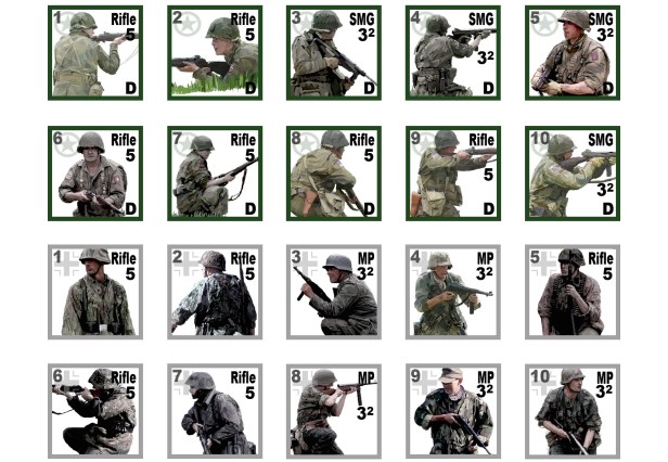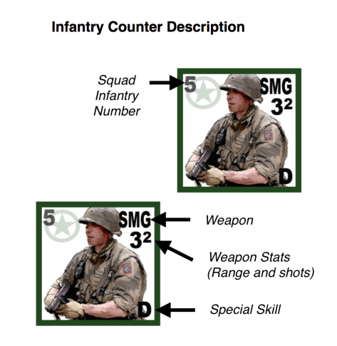 Matt: The game includes 10 soldier counters for both the German Infantry and US Airborne. In the game the player randomly creates a skill for each soldier and that will help the player determine what that soldier is most proficient at.