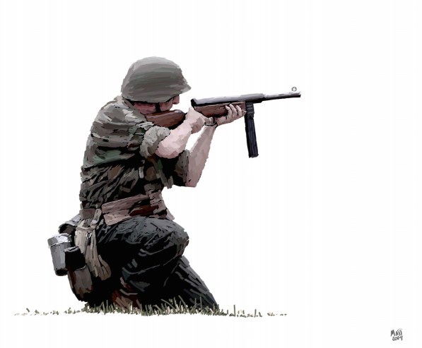 Matt: To carry out this Action follow these steps. First the player must declare their Infantry Counter that is firing and the enemy target. Next check the range and make sure the target is within range of the weapon being used. Then, if within range, check Line of Sight. Then determine any modifiers to the “To Hit” dice (these would include the target being in cover, etc. – normally if there are no modifiers the dice roll required is a 3). Then roll the dice determined by the firing weapon and check to see if the weapon jammed as a result. If a hit the next phase is to see if the enemy target is Wounded. Roll again with a six sided dice, normally requiring a 4. If the dice roll is achieved the enemy target is removed from play, if not it receives a Wounded counter which will effect it later in the game unless it can receive medical aid.