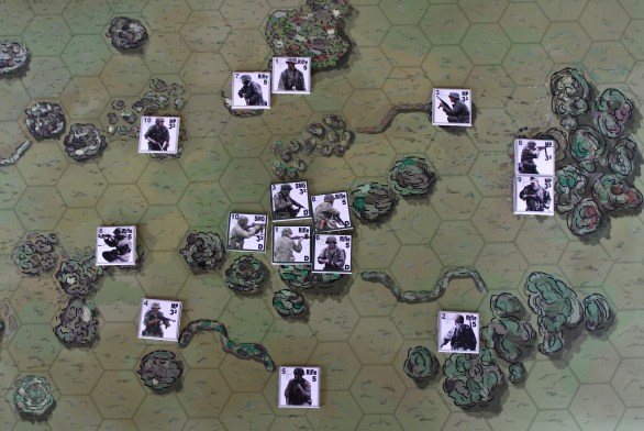 Matt: The game focuses on a small squad of troops, with every counter representing one single soldier. Most games I play a counter represents a squad or even more soldiers and I really wanted to make (and play!) a game where the focus was on the soldier.