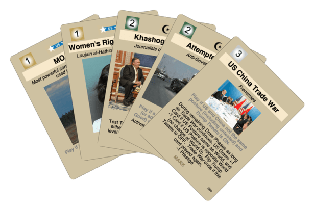I recently posted an article on Inside GMT Games that goes into great length about the process of designing an event card and your readers might be interested in that at: http://www.insidegmt.com/2019/06/labyrinth-the-forever-war-challenges-in-designing-a-simulation-game-based-on-current-events/