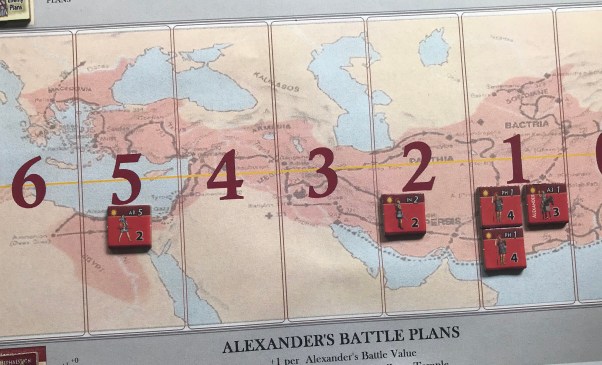 Hephaestion (Hero) – Adds +1 to Alexander’s Battle value. This adds to Alexander’s chance of successfully attacking in battle, and the number of Battle Plans you get to choose.