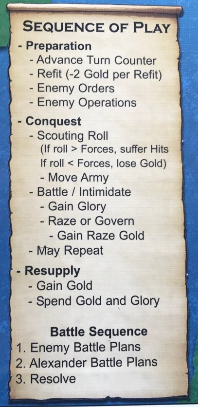 In Field Commander: Alexander the Sequence of Play is broken up into three distinct parts: Preparation, Conquest and Resupply.