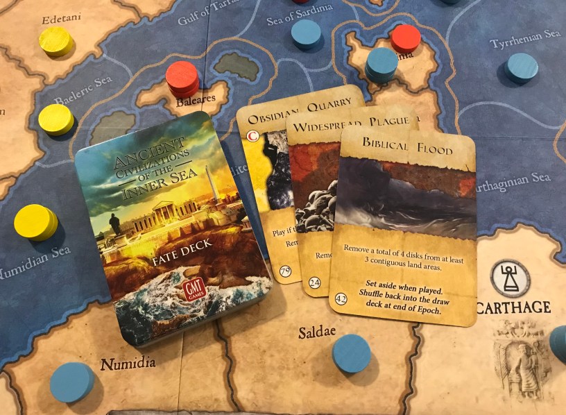You know the old country song “you’ve got to know when to hold ’em…”. This is exactly what taking a Pass is during the Card Phase. When a civilization cannot or chooses not to build a Wonder or play a Fate Card they must Pass. Once they have passed they cannot get back into the card playing during the Card Phase. When you have passed you can play a Negate Card though but cannot play any further generic Card Phase cards.