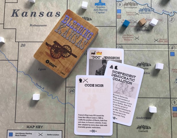 If you are interested in learning more about the design, you can read our interview with designer John Poniske published in July 2019: https://theplayersaid.com/2019/07/08/interview-with-john-poniske-designer-of-bleeding-kansas-from-decision-games/