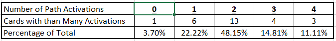 Some of the cards only activate one Path, while others activate as many as 4 Paths. Here is the full breakdown of the 27 Event Cards and how many Paths each card activates: