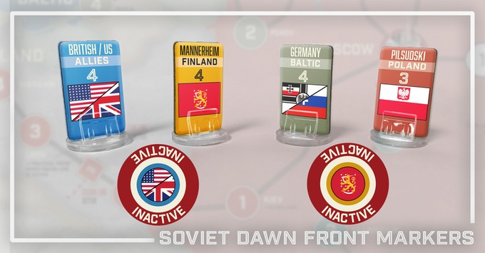 Darin: Since cards drive the game all the cards will be the highest quality with the matt linen finish. They will also be larger poker sized cards. Each front will have stand up counters to show their progress to Moscow. A custom plastic tray will be included in the game. All new art will be used for the cards and game board and both the cards and the game board are larger. The same thing for the counters used in the game. We will also include a game archive booklet which is used for the players to record each game played (strategies used, game results, etc.).