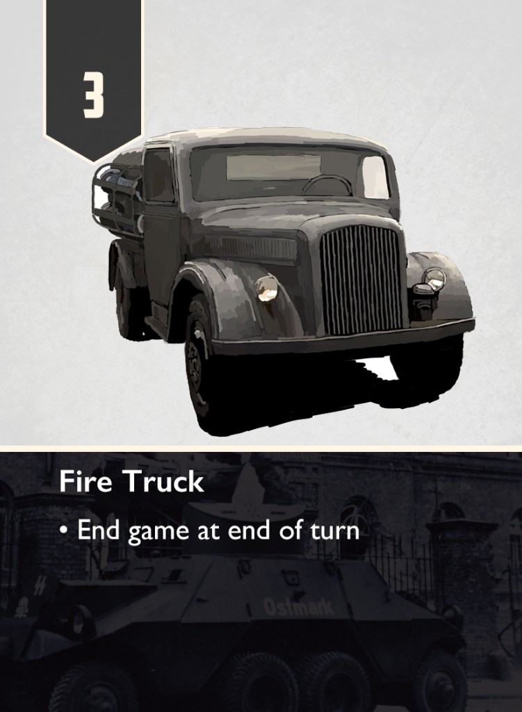 Grant: You have introduced vehicles for the attackers. What are they and how do they function? What specific role does the Fire Engine play?
