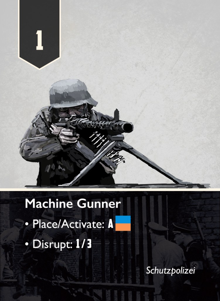 David: That’s right – there are five different types of Assault Counters. First we have the Leaders, which represent the historical leaders who led each of the different assault groups during the first two waves of assault. Then we have Danzig City Police riflemen and submachine gunners, and we have SS riflemen and submachine gunners. Submachine gunners inflict a much higher level of casualty if they breach the building and begin clearing operations. SS Counters have a higher defense than do the Danzig Police, representing their superior training.