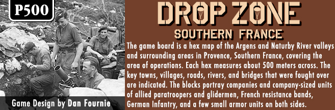 Dan: The intent of Drop Zone: Southern France is to provide a fun, fast-playing wargame on a very interesting campaign that has never been covered before. I chose this subject for my first wargame design because my father was one of the paratroopers who jumped into Southern France back in 1944. I have studied the campaign in great detail over the past 40 years, and had the opportunity to walk the drop zones and battle sites while I was stationed in Germany.