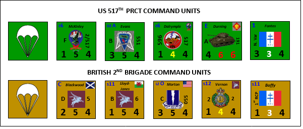 Dan: The Allied player receives a number of Reinforcement Points (RP’s) as specified on the Turn Record Track (from 1 to 4 RP’s per Command per Turn). RP’s are listed separately for the American 517th PRCT and the British 2nd Brigade Commands. Allied RP’s are used as follows: