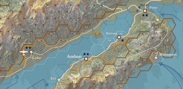 Marc: Victory, calculated in victory points for the Japanese player only, is achieved by means of the control of key locations on the map and by means of casualties inflicted on the enemy. The objective of the Japanese player is to conquer the three main key locations in Ambon (the city of Ambon, the city of Paso, and the Laha airfield) as well as some secondary key locations as soon as possible. The sooner the Japanese player conquers these locations, the more victory points he will receive. As I commented earlier, we introduced a devaluation of victory points as turns advance, and in fact controlling some locations on the last turn gives negative VPs to the Japanese player, and even more negative VP’s for not controlling them at game end. At the end of turn 10 (or at the beginning of turn 8 if the Allied player has surrendered; see later) the Japanese player adds up all his VP’s: for key locations controlled and for Allied enemy units eliminated, but deducts VP’s for lack of control of key locations and for eliminated Japanese units.