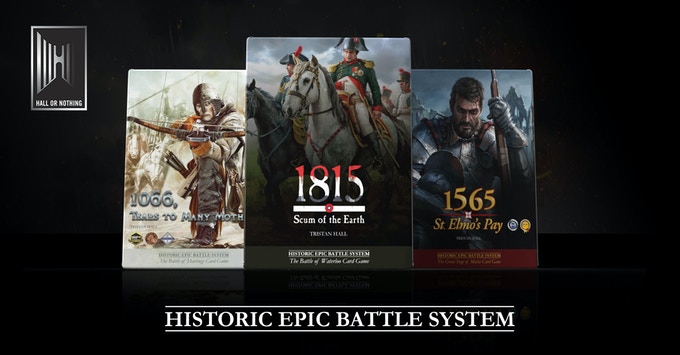 Tristan: A HEBS game is an asymmetric, competitive tactical card game in the style of Magic the Gathering but non-collectable: the complete game is in the box. Each game covers a different conflict in history, and all the cards are based on real events or people or combat units from the period. It’s my attempt to bridge the gap between heavily thematic wargaming and more easily accessible card games. Every game has 100% new content, so the challenge is always to come up with new abilities and card effects based on the history, but that remain compatible with the previous games. This allows players to pit armies from one era against other eras too.