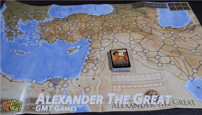 The Conquerors: Alexander the Great uses a new system for the time when the game was designed in 2006 that gives the players a feel for the era and the problems of campaigning therein. For one, there are no turns. Play keeps going until the Macedonian Player wins or Alexander dies. And winning, for the Macedonian Player, is no easy feat. Yes, his armies are mighty, but Alexander is a game in which the player must not just win battles, but also overcome the logistics of campaigning … building armies, getting them to where they’re needed, understanding battle fatigue and weariness, dealing with personalities, and adapting to the society you are trying to seize.