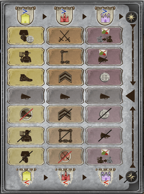 Saul: It is very important, as well as the cards. It allows you to link actions in a forceful way, also with “positive” levels you can supply provinces when the supply cards are activated. If you go down on the track into its negative boxes you lose benefits or elements.