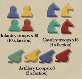 Saul: Patria Libre tends toward minimalism in order to keep the rules overhead low and focus on playability and strategy; you cannot have more than one troop per province. So when recruiting you place an infantry in an adjacent province without your troops. The infantry is the weakest piece, but if it is attacked by a strong piece, the attacker will lose popularity. Cavalry can march up to two spaces. The artillery has a rank of 2, it can attack adjacent provinces, which is a huge advantage.