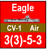 Many units have a specialist ability which provides them with additional capabilities that can be used to strategic advantage. In this case, the HMS Eagle is an aircraft carrier and it has an air component (AIR) which is noted to the right of the ship classification. That means it can enter a box with AIR capability. The specialist value is indicated in parenthesis next to the ships normal firepower factor.