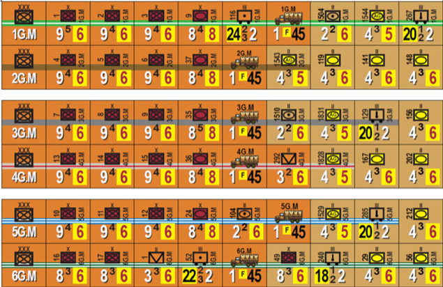 Tony: I have gamed and read and collected from the period in question for 35 years. This provided an invaluable background. The OOB I already had in the volumes commercially available in hard and soft copy. The challenges were the conflicts in unit locations, etc. the changing nature of composition of units throughout the time period and deciding ultimately what to include and also leave out for various reasons. One of the particular things we needed to deal with was how many transfers in/out of the play area happened during the campaign. If the Order of Arrival were precisely historical you would see many Soviet divisions swap in and out each turn. We chose to manage the number of divisions instead of every single move.