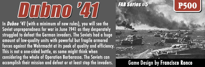 Francisco: I think we need at least one East Front game in the FAB Series. This series is ideal for the kind of mobile battles that were fought on the Soviet-German front. The elements of the FAB system (hidden units, reserves, special actions, events & assets) allow players to play fast & furious armor battles and the East Front was full of them. So, if this title is well received maybe I would finish several more FAB designs centered on East Front battles.