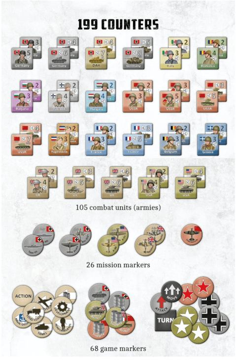Victor: Armies only contain the Combat Rating, nationality, and unit type: Infantry or Armor. I intentionally kept the type of units fairly basic to not overcomplicate the rules and also to better portray the scale of the game as a Strategic Level game.