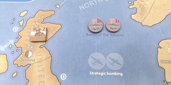 These submarine missions are going to be a strong limitation for the Allied player, especially at the beginning of the game, Allies start with 2 actions per turn, he will have to do without one of them, due to the German submarines.