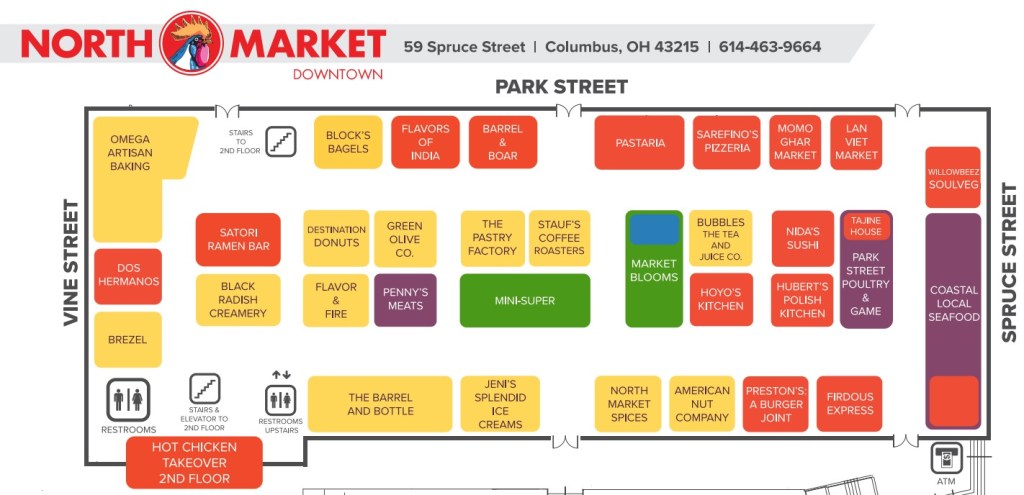 If you need some fresh air and want to stretch your legs, there are several nearby restaurants within walking distance including BD’s Mongolian BBQ (our personal favorite!), Barley’s Brewing Company, Pies & Pints and Jeff Ruby’s Steakhouse among many others. There is also the very famous and amazing North Market just down the street a few blocks. This market is an eclectic mix of more than 30 independently owned small businesses offering a wide variety of fresh produce, meat, poultry, seafood, flowers, specialty food items, international prepared foods & distinctive gifts. Some of my favorites here are Hubert’s Polish Kitchen (perogi!) and Barrel and Boar that offers some of the finest BBQ around.