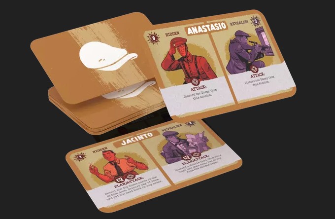 David: Each Maquis card is divided into two sides: the Maquis when they are hidden and the Maquis when they have been revealed. The card includes the Maquisard’s name, hidden and revealed attack values, the type of actions they can take (“Plan” or “Attack”), and the effects of the actions.