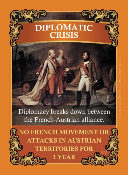 There were, as you know, Seven Coalitions of the Napoleonic Wars, so Alliances changed frequently. So, the Battle Cards address this fact with treaties, tensions, and battle consequences between Allies. And anyone aggrieved with Austria being aligned with France fails to understand they were in constant treaty with France as a result of battle defeat or campaign loss. France had imposed Alliance or non-aggression terms in treaties on Austria and was politically connected via Napoleon’s marriage to Marie Louise, the Austrian Archduchess. And they did send their armies alongside France in that disastrous 1812 Russian Campaign.