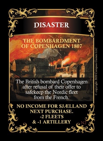 - Five cards related to economic events such as the Danish Bankruptcy, British ally funding, or Spanish Treasure fleets.