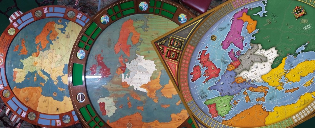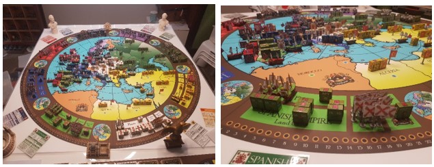 Andrew: Napoleon’s Imperium was an evolution from a massive custom-made tabletop game. Converting a 98.5 inch round custom tabletop game, with its unique “Christopher Columbus” style round map that hosted over eleven hundred 28mm tin figures, down to a half the size board game, was a real challenge.