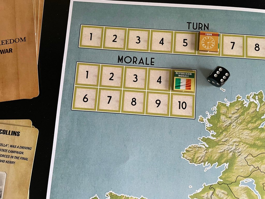 The game is won or lost through the standing of the Morale of either the British during the War of Independence or the British and Pro-Treaty Irish in the Civil War. There is a track with 10 spaces that represent this morale. It is raised and lowered based upon whether there are regions cleared of the British units, whether Cities are occupied by Irish units or by how many British units have been eliminated. The key is not getting the Morale to zero but in getting it below 6 where at the victory check each round, the player can roll a D6 and if they roll over the current Morale the Treaty is forced and the conflict is over. This is much harder than it sounds though as you have to work really hard to clear Regions and occupy Cities and then have to make sure you keep them clear before Mobs or other British units pop up in the region to attempt to wrest back control. I found that I went about trying to pick off RIC units before they could upgrade to more difficult to defeat Black & Tan units but this can only be relied on for a few points as you really have to work hard to get the Regions clear.